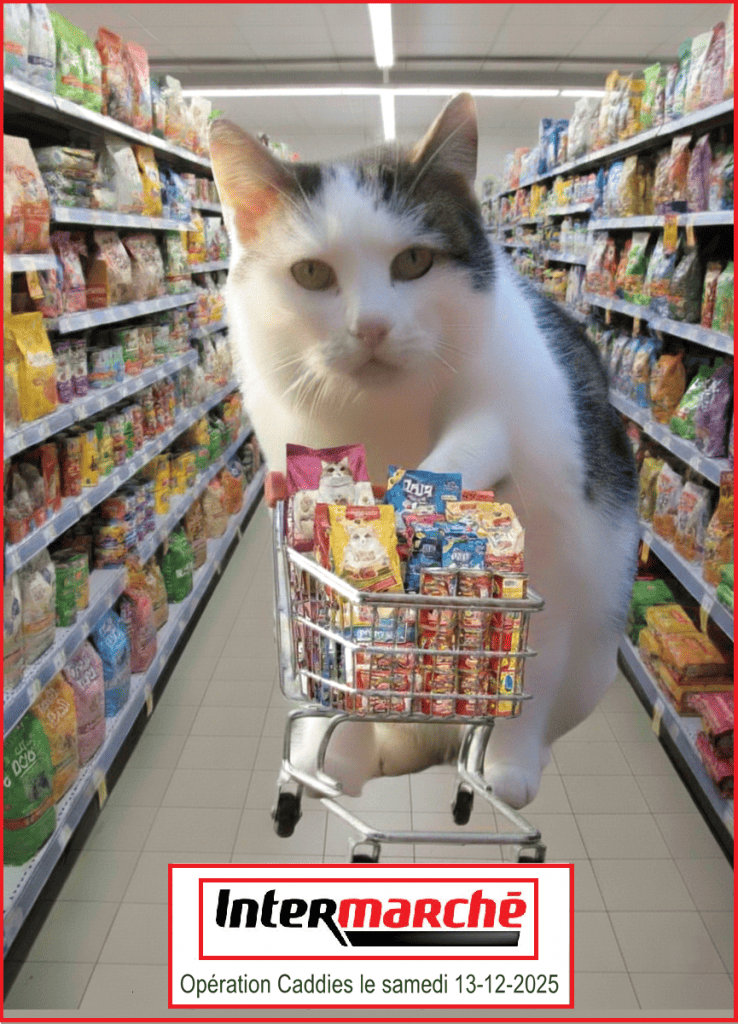L’OPERATION CADDIES du 21.01.2023 est TERMINEE – BRAVO les FILLES vous avez assuré comme des chefs !! et MERCI à TOUS les GENEREUX DONATEURS ainsi qu’à l’INTERMARCHE de ST-VALERY-sur-SOMME ! Voilà le résultat quand tout plein de grands coeurs se rencontrent : 8 Caddies pleins !! C’est merveilleux !! Les petits Matous vous disent : Merci !